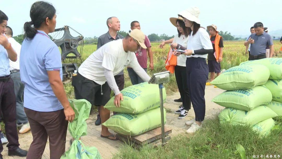 近日,省农业农村厅、省农业科学研究院水稻所、肇庆市农业农村局有关专家到新桥镇珠江村水稻合理密植提单产核心示范区、白诸镇稳裕村水稻大面积单产提升攻坚行动项目千亩示范片开展测产验收。经田间实收测产,示范区(片)早稻平均亩产553.6公斤(为折合干谷亩产),较全区水稻平均亩产水平提高25.5%,成为高要区水稻高产栽培示范样板。